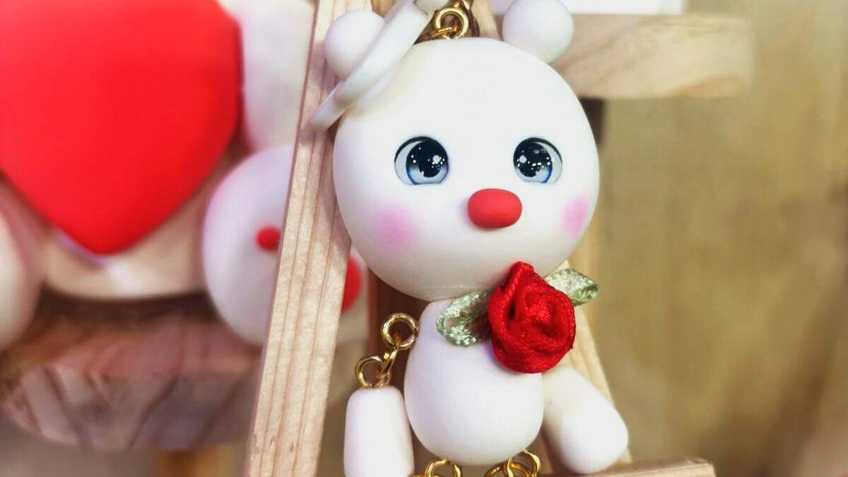 6 - Finalize com a argola de chaveiro e decore com a florzinha rococó.