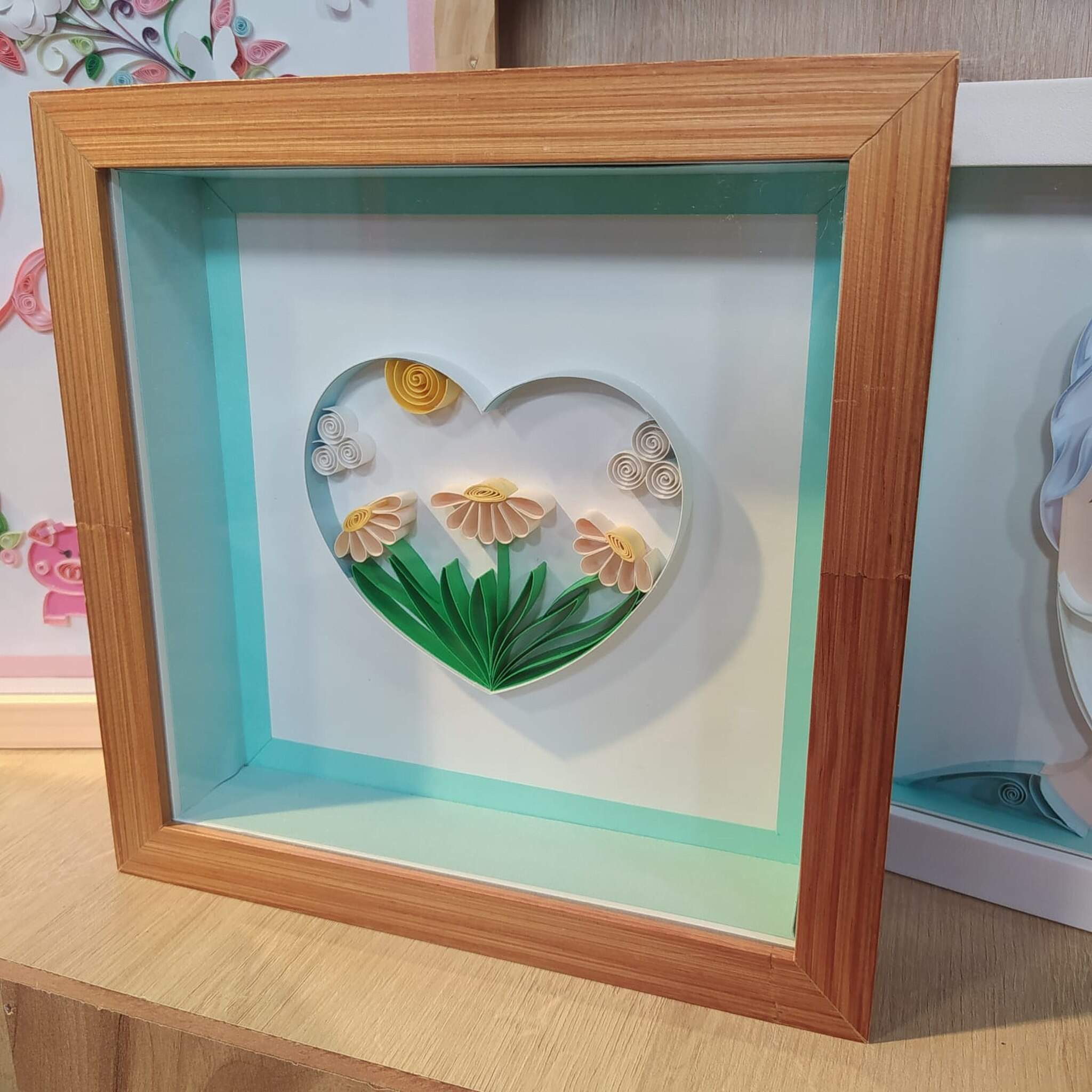 Preencher o interior do coração com flores e arabescos feitos com as tiras de papel moldadas.