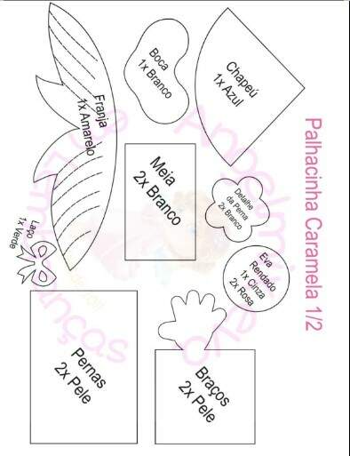 - Imprimir os moldes em folha A4 (não precisa ajustar nada)