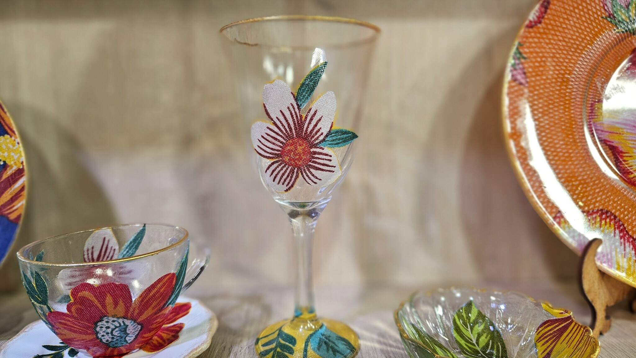 5. Com o pincel macio passar o Engoma Tudo na taça e fazer a colagem