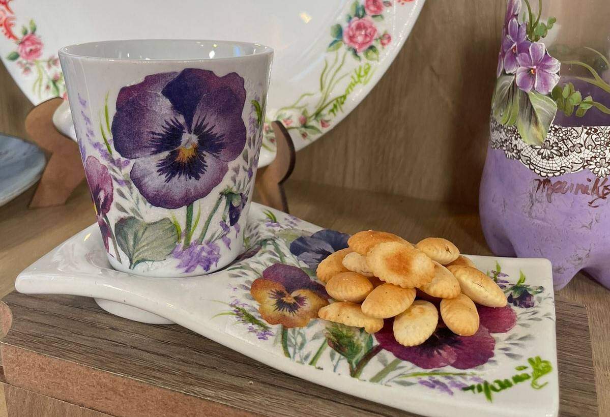 2-Recorte o guardanapo e tire as 2 películas e cole na porcelana com a Decorfix 150 incolor, passando na porcelana e aperte com o plástico e depois passe mais 2 de mão da mesma tinta.