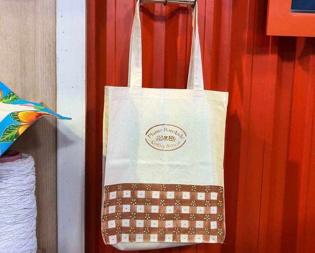 · Fixe o stencil com fita crepe e use o pincel chato curto com pouca tinta para tecido na cor chocolate e pinte com movimentos de vai e vem. Aguarde 72 horas para lavagem.