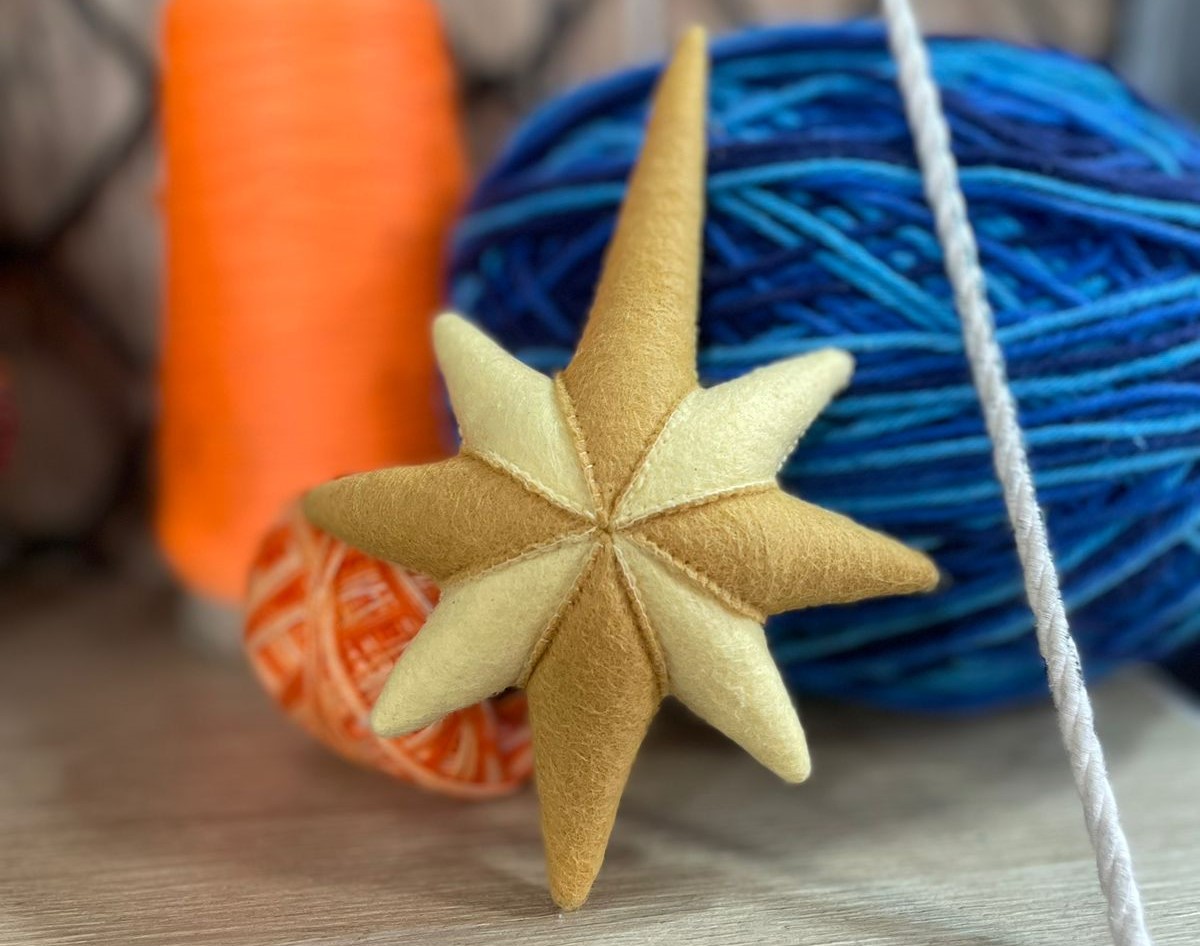 Se for pendurar a estrela na árvore de natal, cole uma argola de aviamento por trás.