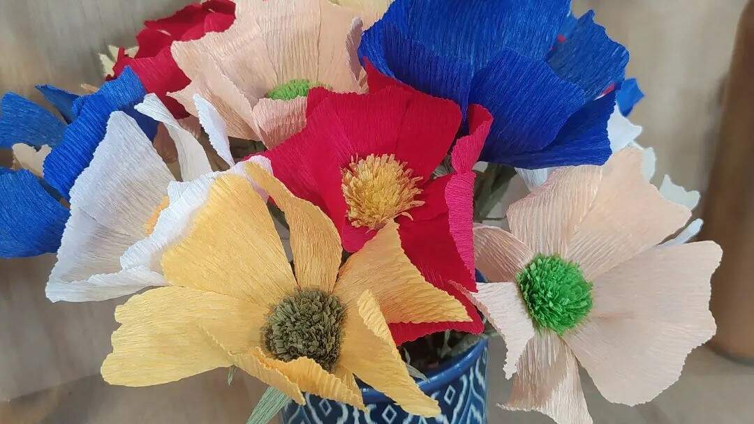 Encapar a parte debaixo da flor com um pedacinho do papel verde;
