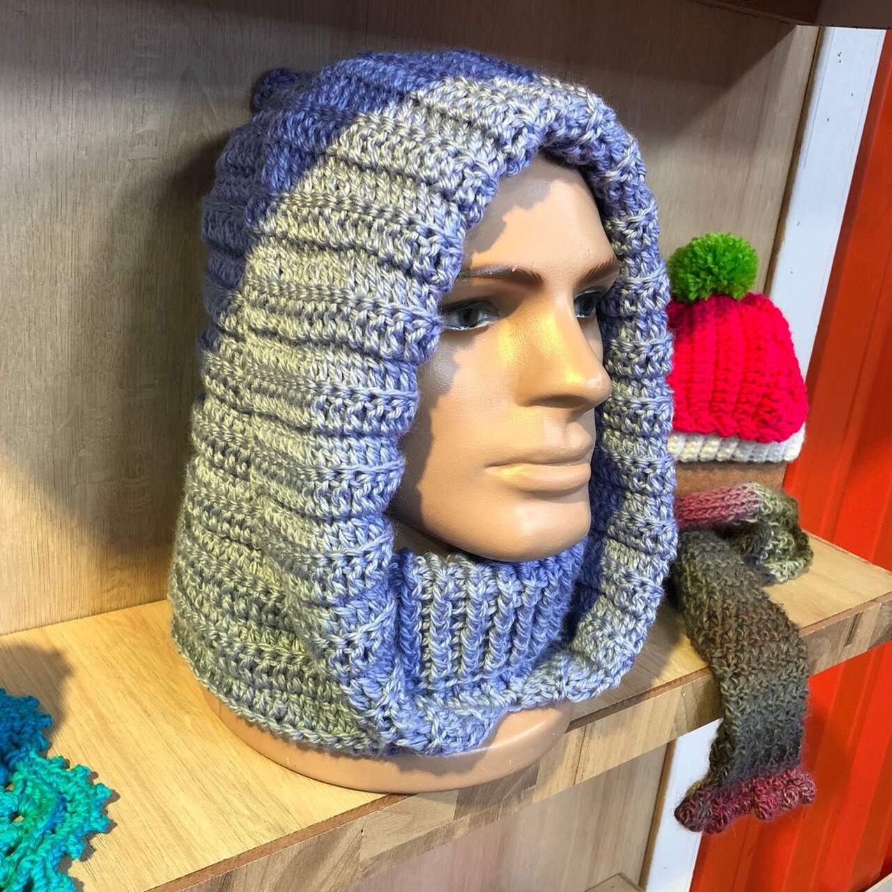Agora posiciona a emenda para trás e inicia-se novamente para fazer o capuz na parte de baixo da gola e no centro.