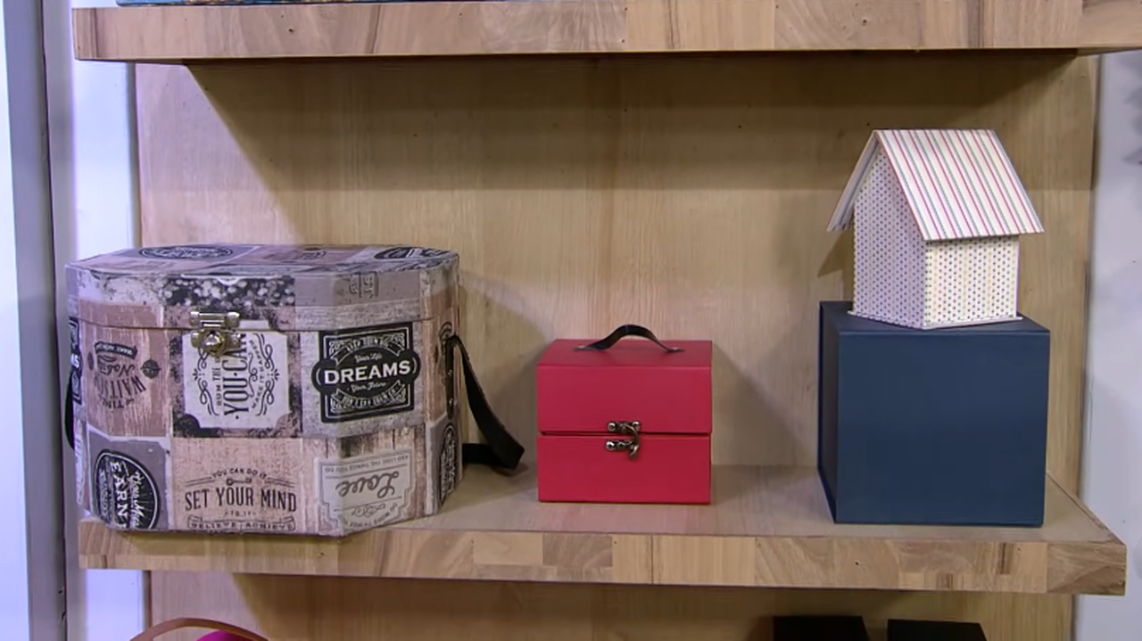 Colar o papel da forração interna da caixa em uma das faces do papelão, em seguida no lado contrário da colagem, desenhar as medidas das caixas no papelão, cortar ao redor dos desenhos e fazer os vincos no quadrado interno, passando levemente o estilete até conseguir dobrar o papelão com facilidade sem separar as partes, formando o fundo da caixa e as laterais.