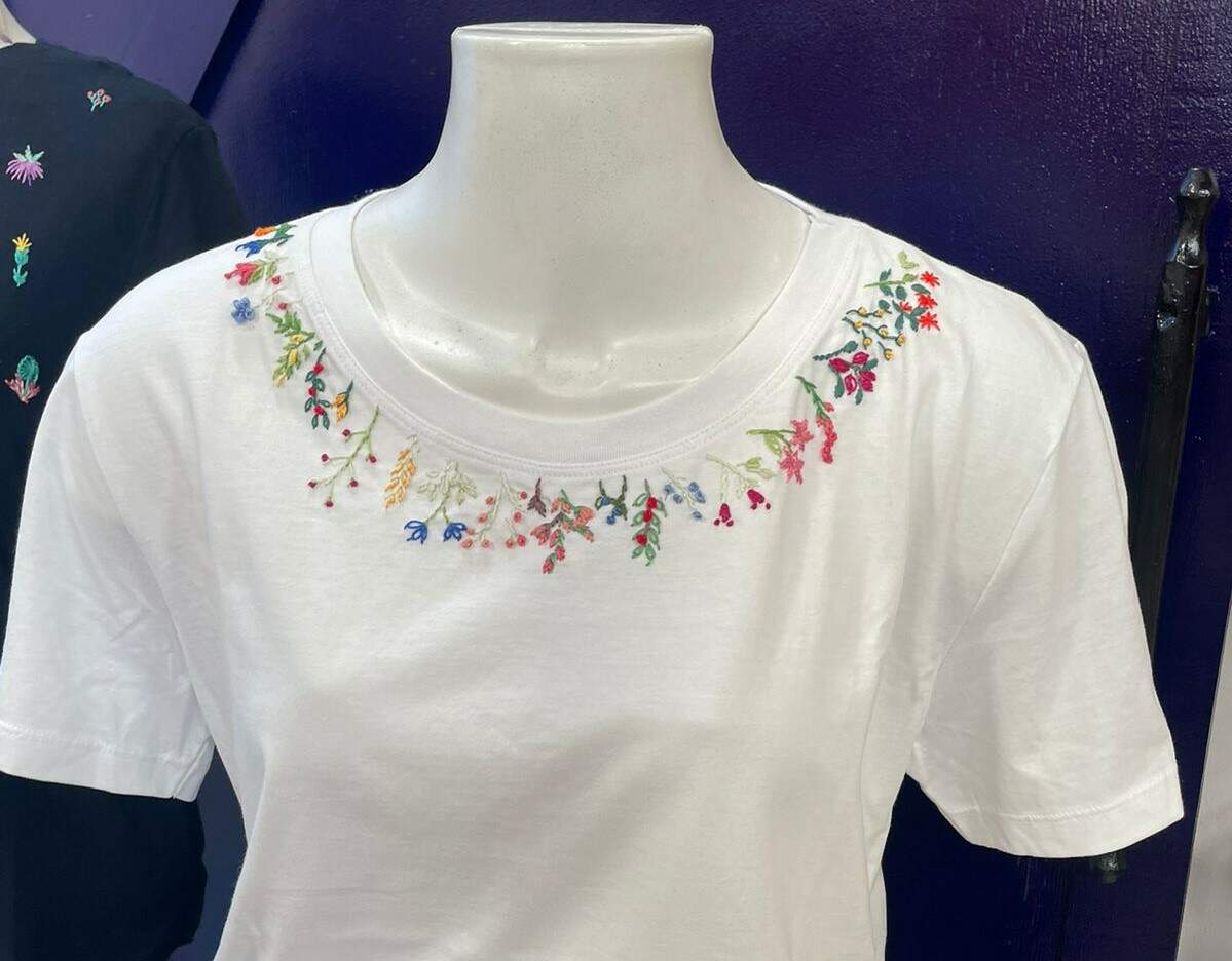 Borde Livremente: Use a agulha e a linha para criar e preencher seu design. Não se preocupe com perfeição; o charme do bordado livre está na sua liberdade e estilo pessoal.