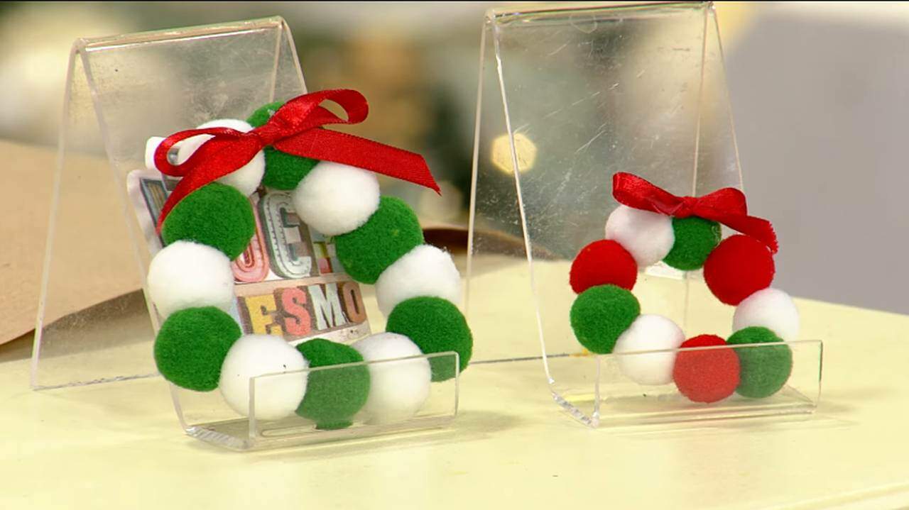 Depois de unir o último pompom, passe a linha pelo primeiro, formando a guirlanda.