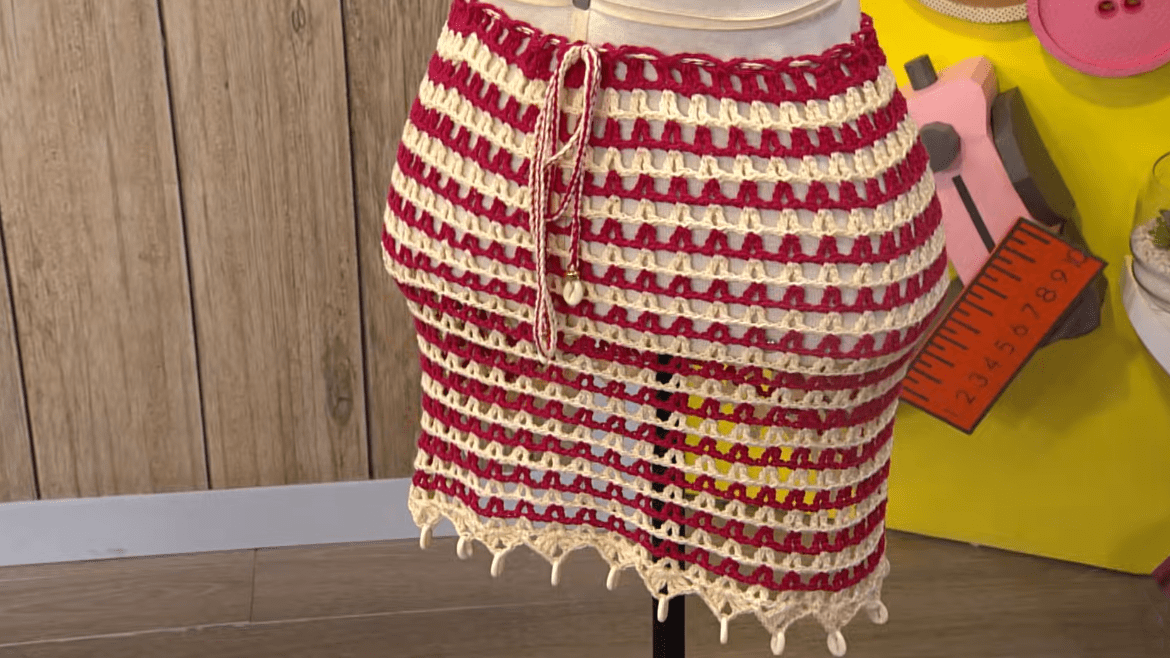Fazer 46 elos de corrente, e trabalhar dentro dos elos 1p.a, 1 corr, e 1p.a, no mesmo elo, 1 corr, de espaço e repetir até o final da carr.