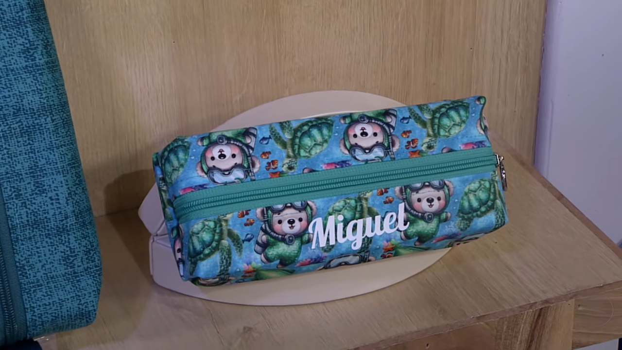 Junte o tecido externo com a entretela passando o ferro de passar. Os dois deverão fixar completamente colados.