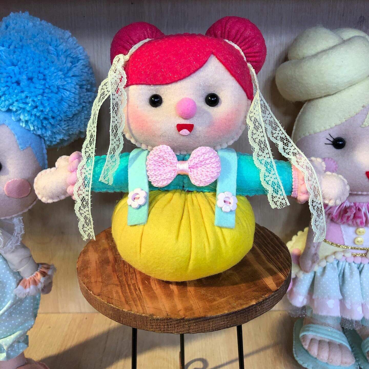 - Para fazer o cabelinho, basta fazer 2 fuxicos e colocar enchimento
