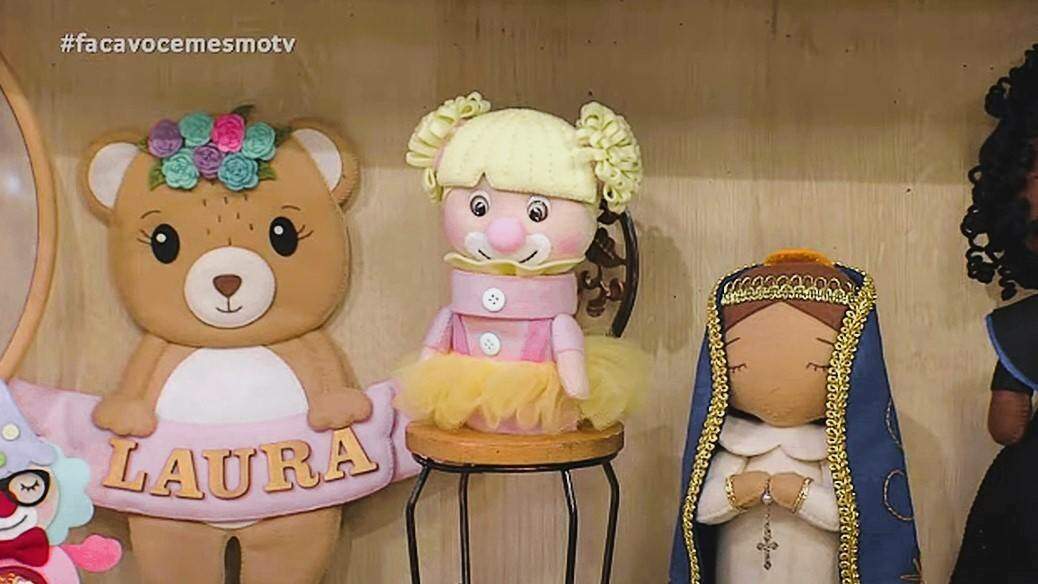 Palhacinho no pote em feltro ensinado pela artesã Larissa Amaral no programa "Faça Você Mesmo".