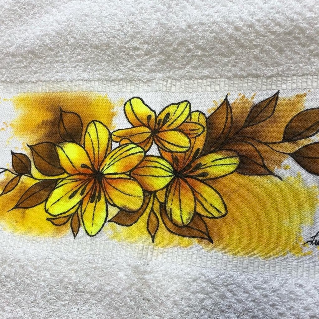 Faça a pintura das flores começando com a cor amarelo limão fluorescente e, em seguida, com o amarelo ouro, amarelo cádmio e siena natural.