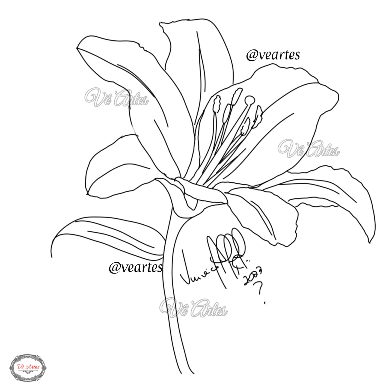 Comece pelas pétalas com os tons rosados, passe para o caule e folha e finalize com fazendo o pistilo;