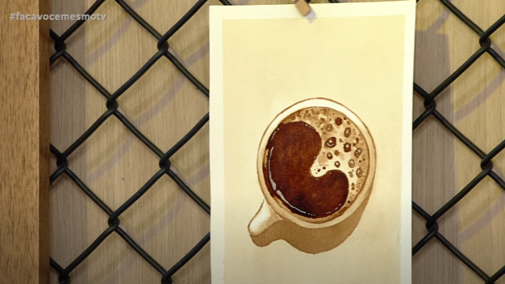7 - Faça as “bolhinhas” do café com pequenos toques do pigmento mais concentrado. Se quiser, use esse mesmo tom escuro para contornar a xícara com delicadeza;