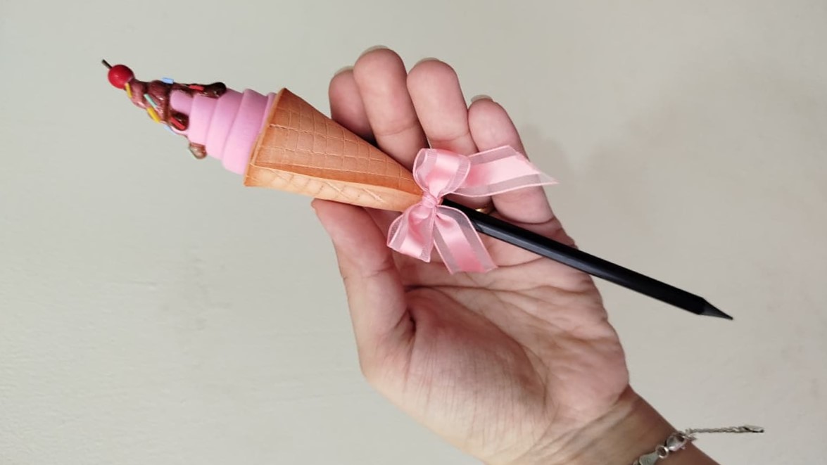 Corte a ponta do cone, para encaixar no lápis ou caneta.