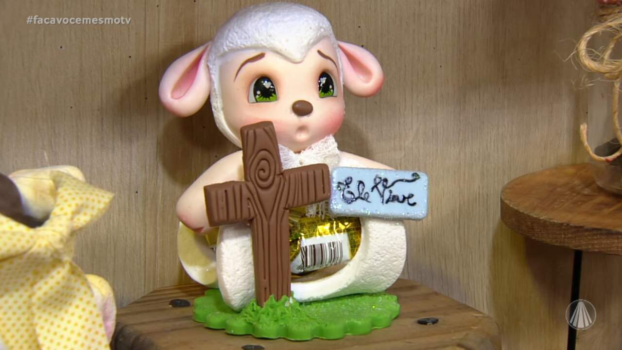 2 - Cole a cabeça da ovelha acima da base entre as patas;