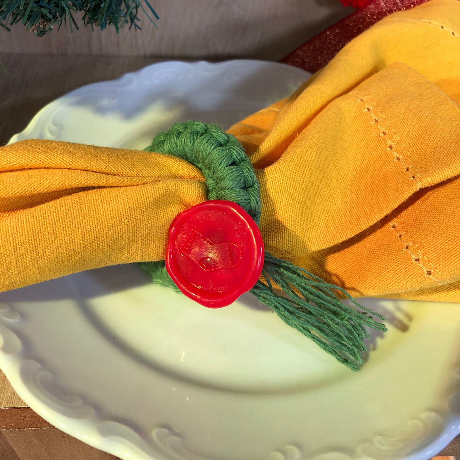 - Inicie com nó cego bem firme e prosseguir com nó básico de macramé até fazer toda a volta da argola;