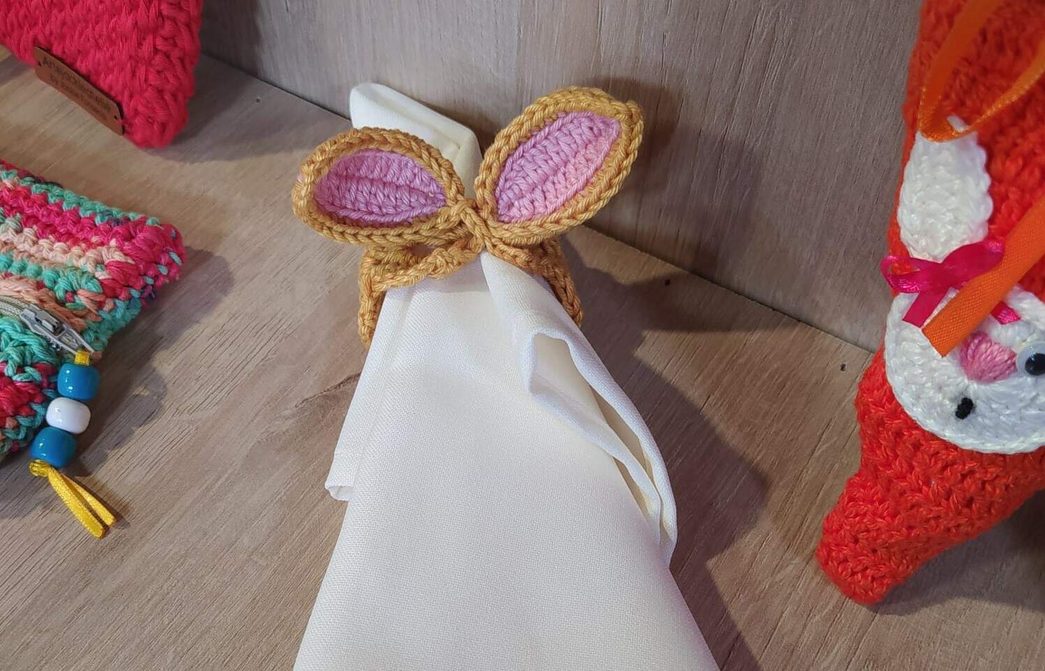 Faça assim por 8 carr. Na nona carr., faça 4p.a., 3 corr.. Prenda na base da outra orelha e contorne da mesma forma que fez a primeira. Finalizando o contorno e chegando na base novamente, faça as 3 corr. Finalize o leque fazendo 3p.a. , 3 corr. e prendendo na base com ponto baixíssimo. Arremate e pronto!