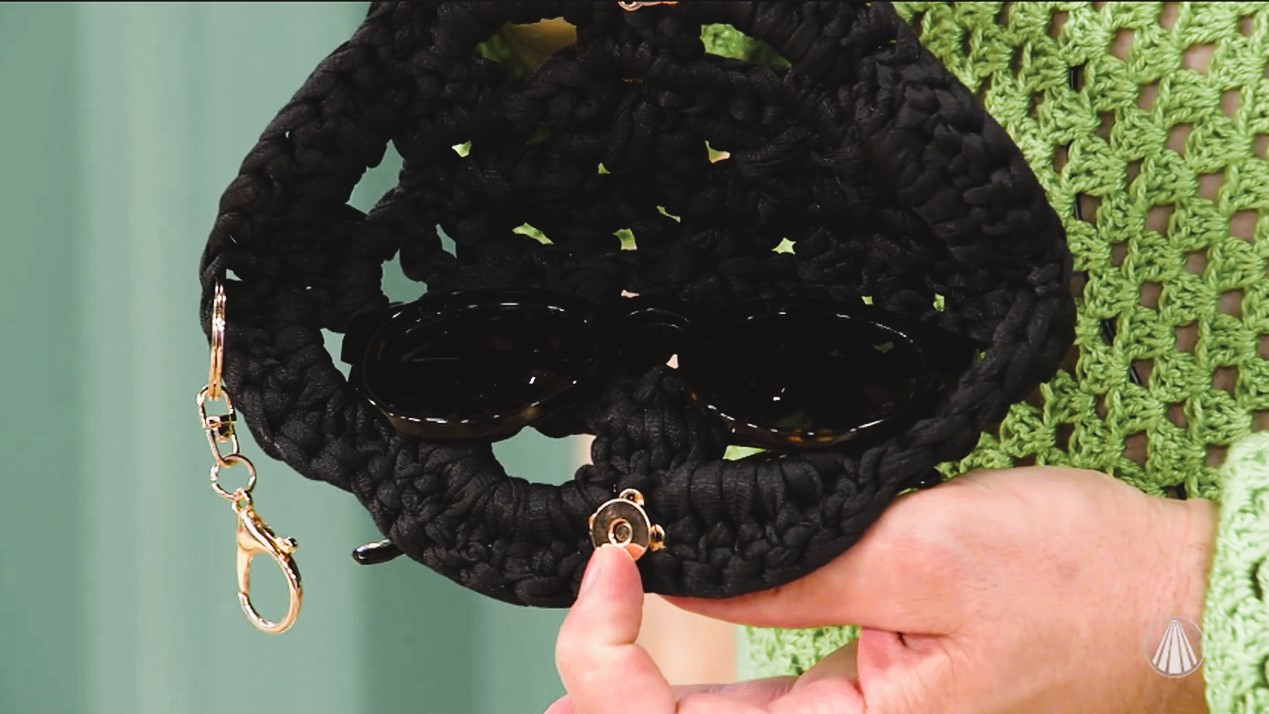 Dobre a peça ao meio e costure o botão imantado centralizado na borda, de modo que fique em uma posição funcional de abre e fecha.