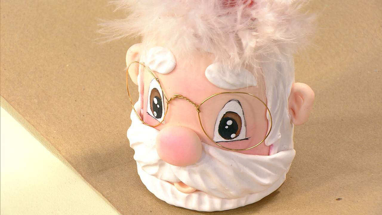 Rosto: Abra a massa cor da pele na medida da taça e cubra a parte do copo da taça, escolha o melhor lado e faça a boquinha na parte de baixo da taça afundando levemente o boleador e puxando para frente e para baixo. Deixe secar por 4 a 12 horas.
