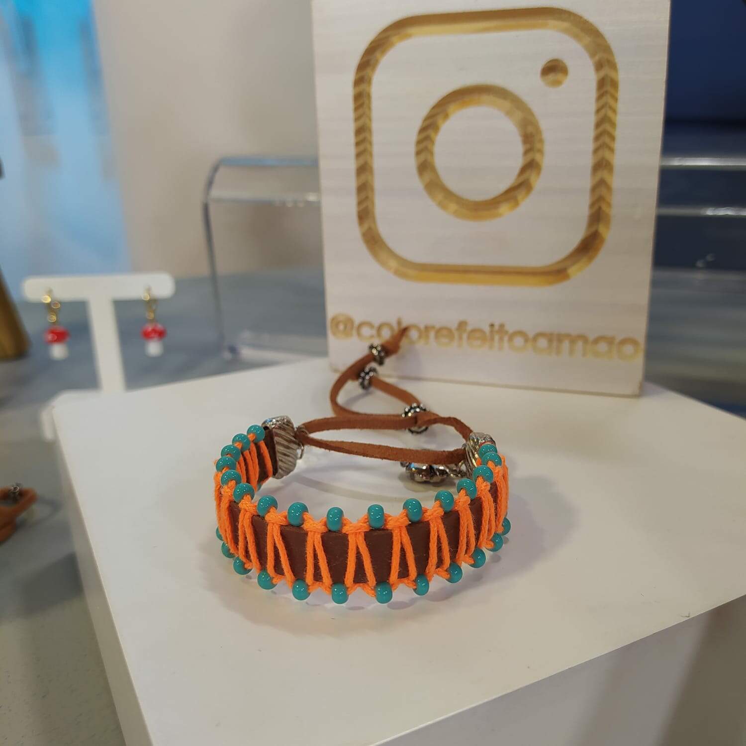 · Junte as 2 pontas da pulseira e passe um pedaço de camurça para fazer o fechamento.