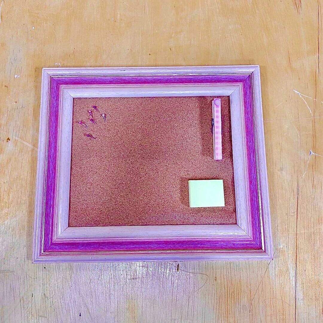 Desmonte o porta retrato, retirando a parte de trás e reserve o restante. Com a folha de cortiça, faça a medida da parte de trás, risque e recorte. Caso necessário, faça com a cortiça dobrada para ficar firme. Com a cola quente, cole as duas partes da cortiça na base, encaixe novamente no porta retrato. Decore com os adesivos de lembretes e as tachinhas para prender os recados. Seu porta-recados está pronto!