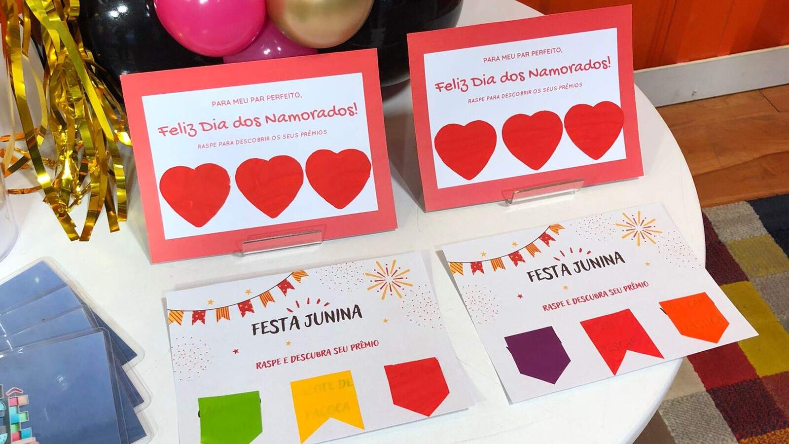 Depois de seco, recorte no formato que quiser e cole sobre os prêmios da raspadinha.