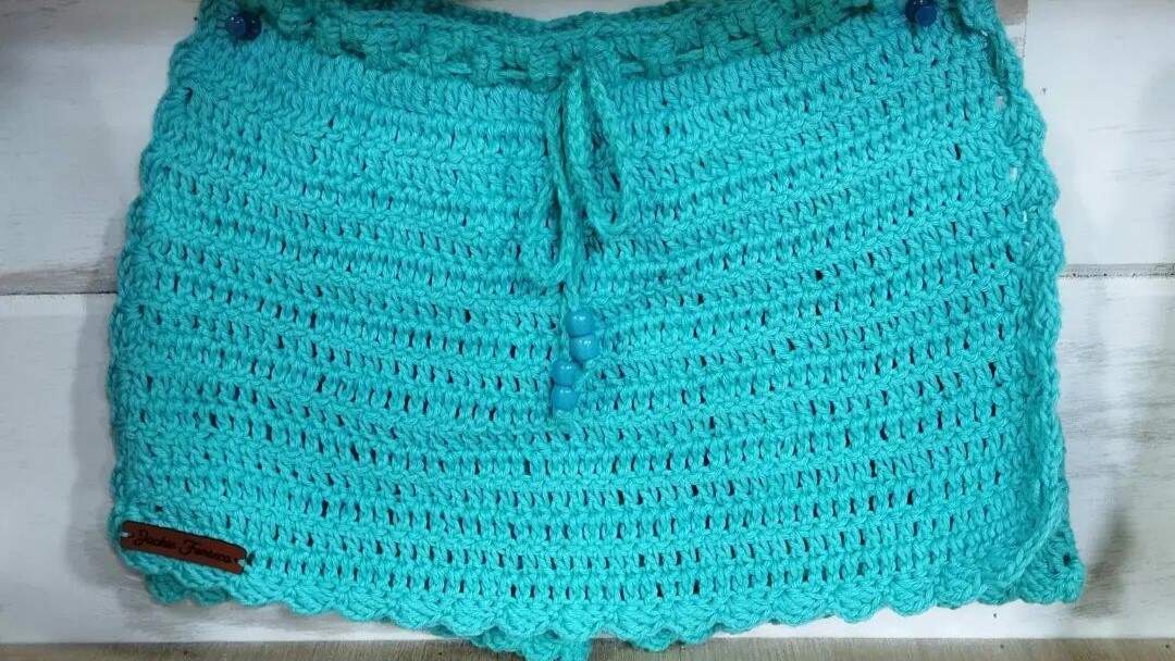 Só fazer pontos altos sem aumentos e nem diminuições por 16 carreiras ou até alcançar a barra do shorts e arrematar com uma carreira de ponto tombadinho a volta toda.