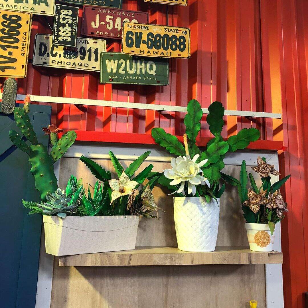 · Folhas: Cole com o adesivo instantâneo artesanato, coloque um arame firme na vertical das folhas e com a cola quente, complete o desenho das veias internas;
