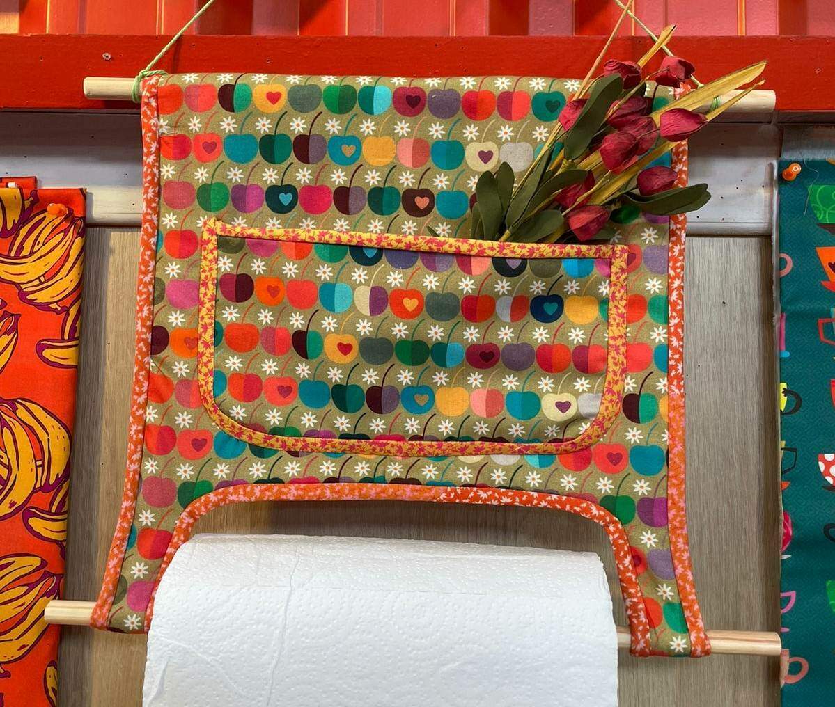 Aplique o viés em toda volta para o acabamento inclusive no bolso.