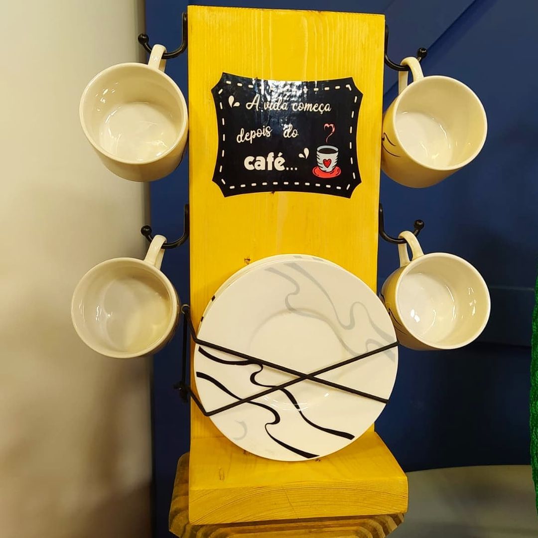 Fixar os ganchos de cabide na parte superior da peça 02 de cada lado onde serão colocadas as xícaras;