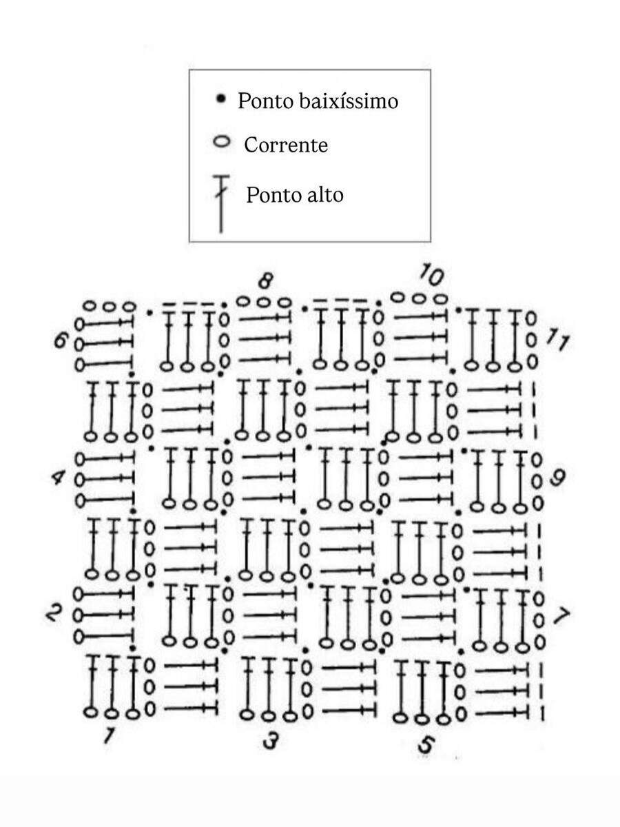 4 - Prenda com ponto baixo na próxima alça de correntes e siga até finalizar;
