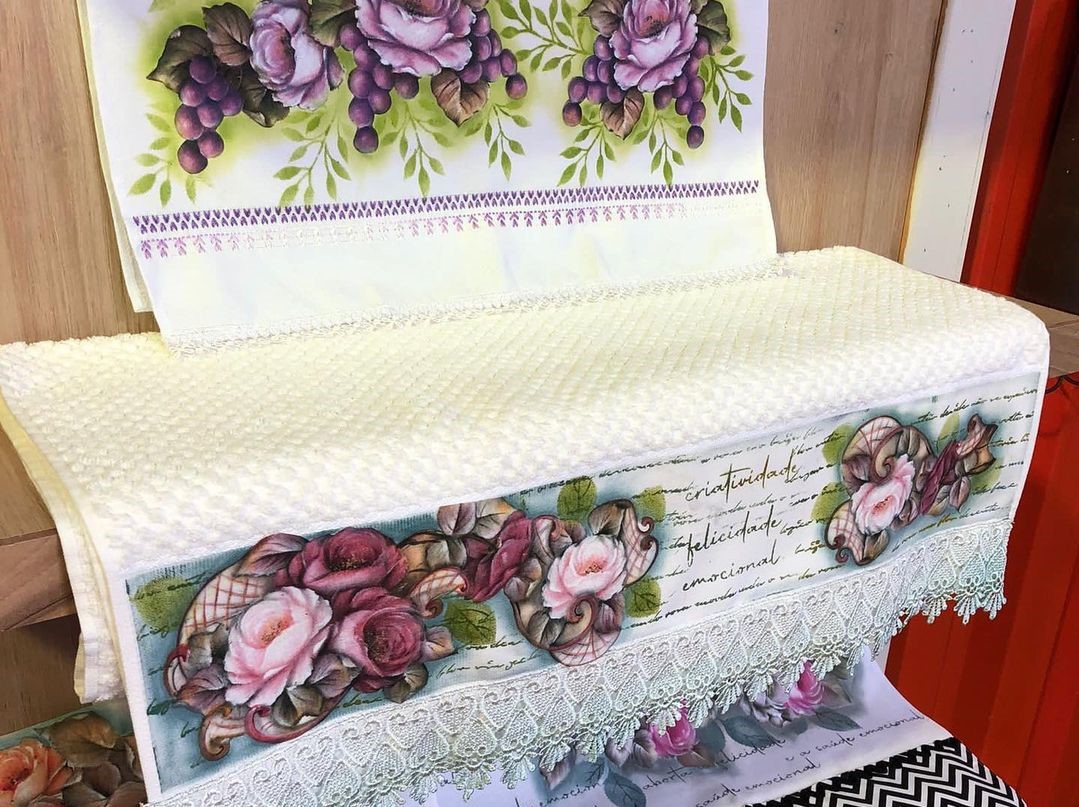· Recorte o adesivo desejado e coloque sobre a faixa da toalha;