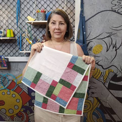 Repita o procedimento por mais 4 vezes. Total de 5 blocos com 9 quadrados de 11,5cm
