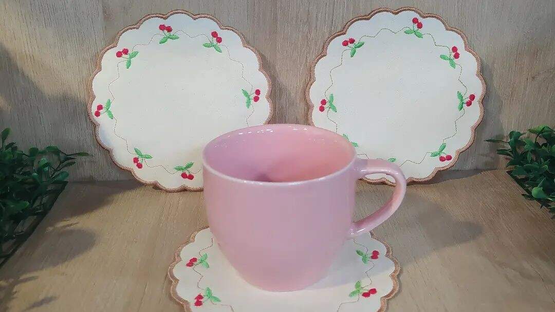 Com o bordado finalizado, retirar a peça e cortar toda a sobra de entretela, e passar o isqueiro em toda volta para dar o acabamento final.