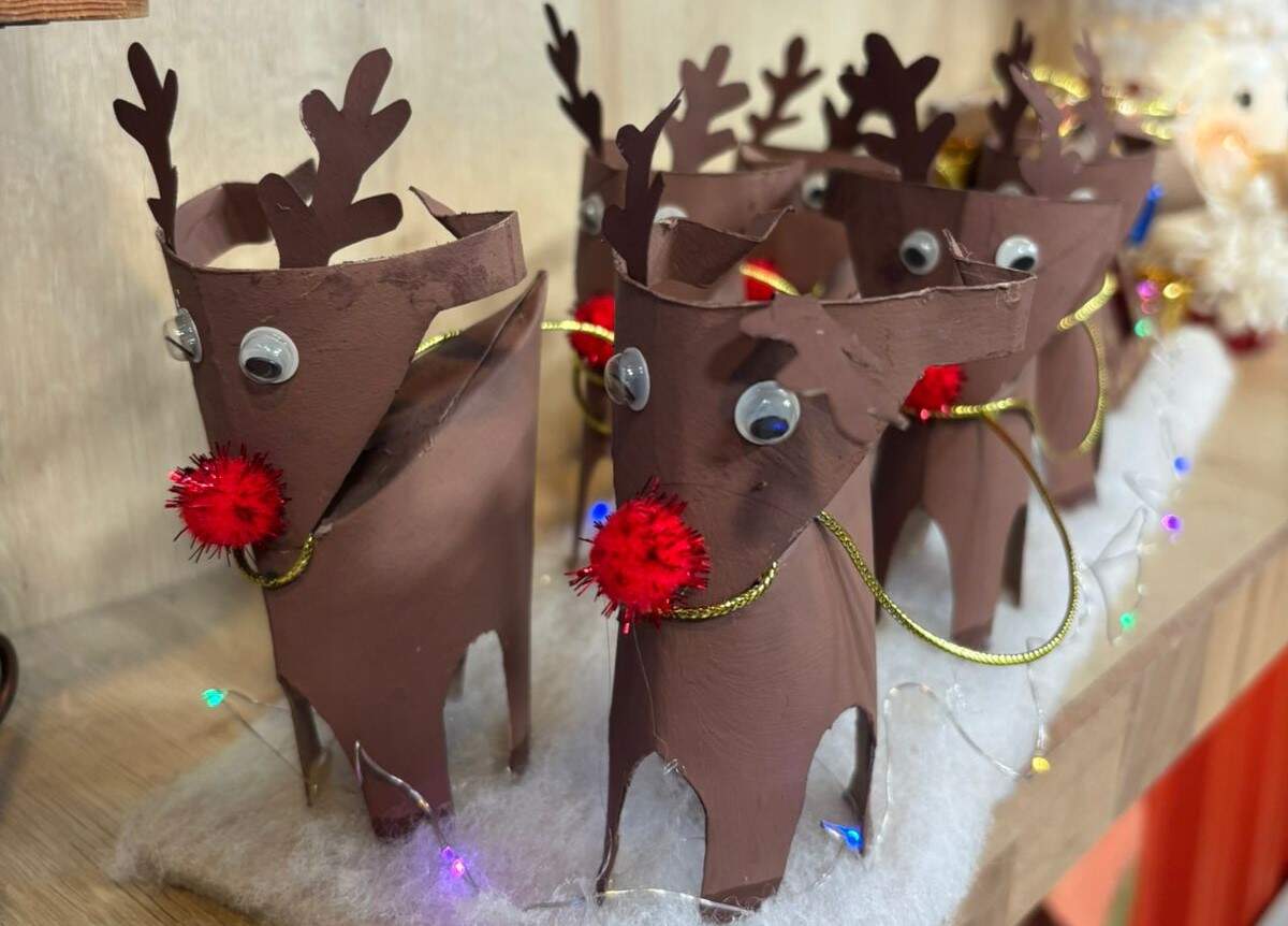 6 - Forre um papelão com acrilon, fibra ou um pedaço de manta para simular a neve e servir de base para fixar as Renas se preferir.