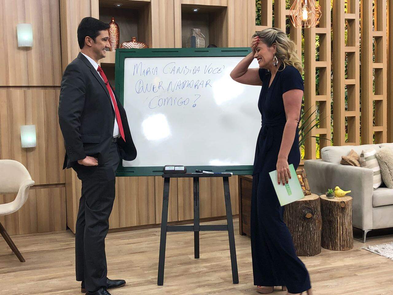 O amor está no ar na TV Aparecida! Nesta segunda-feira (27), a apresentadora Maria Cândida foi pedida em namoro ao vivo no programa Manhã Leve. Maria Cândida estava pronta para dar dicas de finanças com o educador financeiro Mauro Calil, quando foi surpreendida pelo pedido inusitado, feito ao vivo. Mauro aproveitou a audiência da TV Aparecida para declarar seu amor e pedir a apresentadora em namoro.