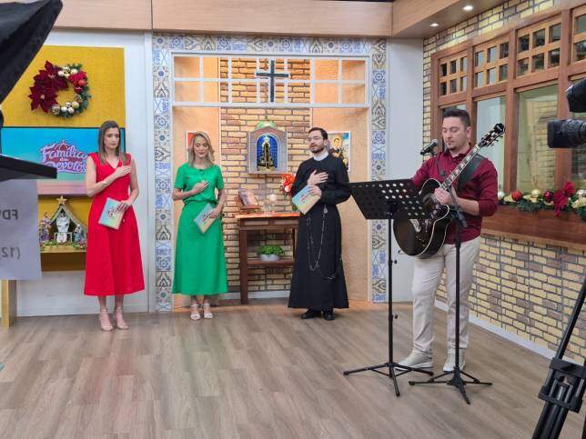Irmão Alan e Juninho entoam os cantos...maisIrmão Alan e Juninho entoam os cantos que animam o programa e nos levam a rezar.menos Dom Orlando Brandes reflete sobre o t...maisDom Orlando Brandes reflete sobre o tema “Acolher Jesus, o Deus da Vida” no programa.menos Jéssica Fernandes, Letícia Hamacher e...maisJéssica Fernandes, Letícia Hamacher e Pe. Pablo vinícius.menos Programa "Família dos Devotos" exibe ...maisPrograma "Família dos Devotos" exibe edições especiais de Natal.menos Programa "Família dos Devotos" exibe ...maisPrograma "Família dos Devotos" exibe edições especiais de Natal.menos Padre Pablo Vinícius.maisPadre Pablo Vinícius.menos O programa convida o público a rezar,...maisO programa convida o público a rezar, celebrar e vivenciar de forma ainda mais profunda o mistério do nascimento de Jesus.menos