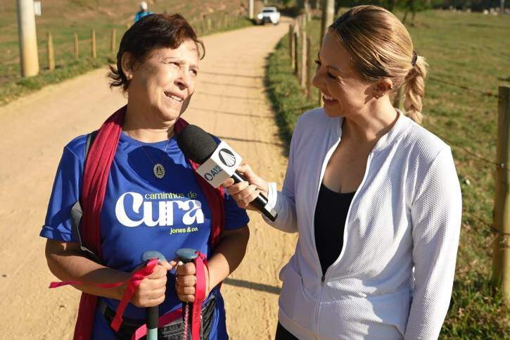 Abiane vai conversar com Bernadete, que já passou pelo tratamento do câncer de mama duas vezes. Ela relatou que decidiu fazer a caminhada para lidar com um processo de luto, pela perda de uma filha, para encontrar a paz no coração e também para buscar a cura espiritual junto de outras pessoas com o mesmo objetivo.