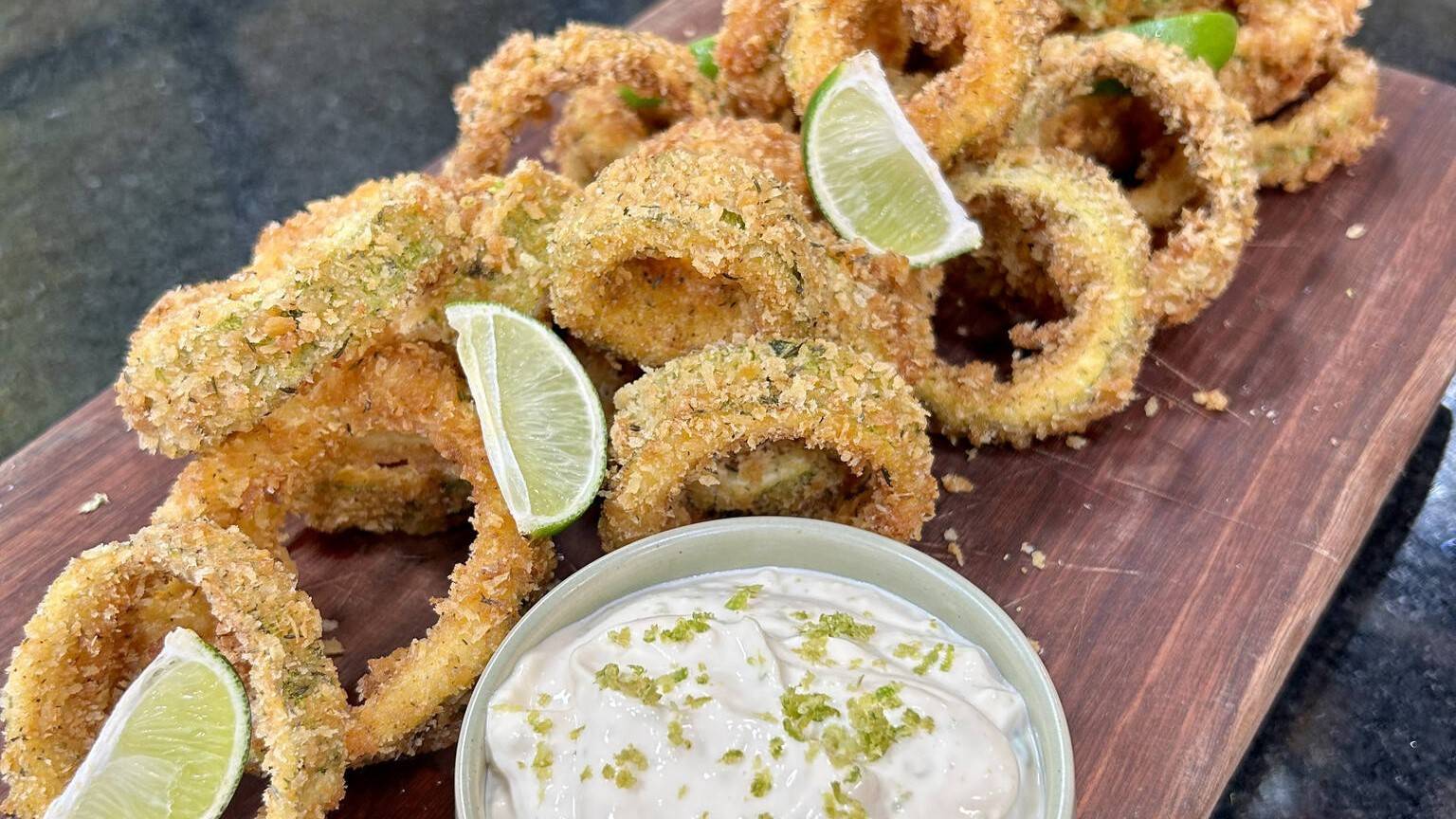 4- Passe as abobrinhas na farinha de trigo, no ovo, na farinha panko e leve para fritar.