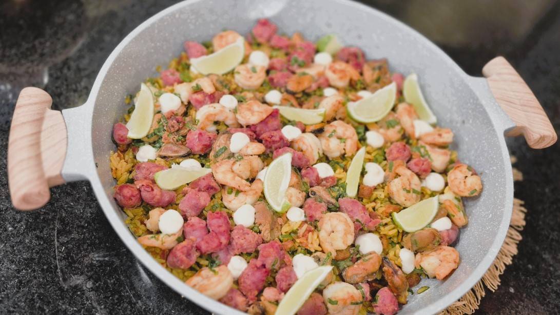 6. Coloque sobre o arroz e ajuste o sal e a pimenta.