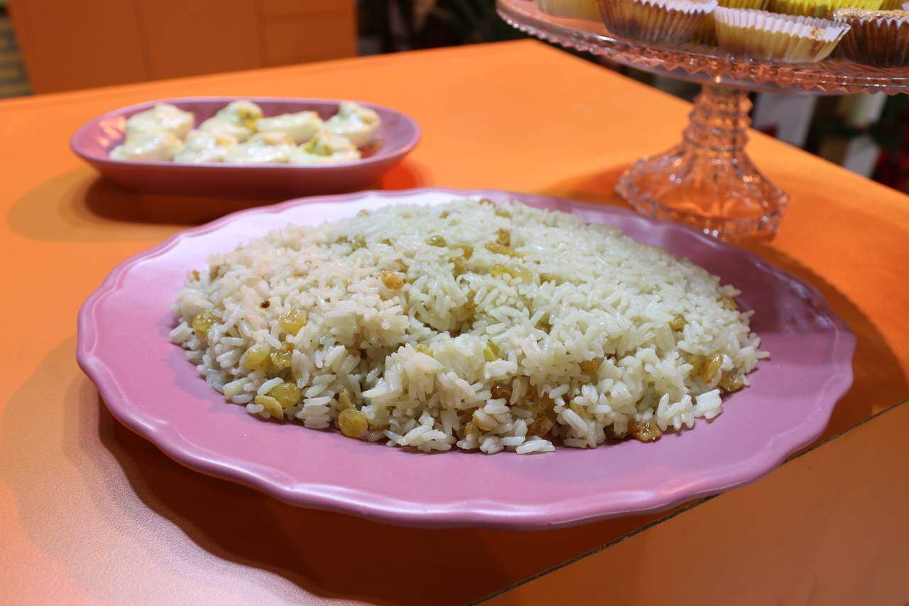 Desligue o fogo e mantenha a panela tampada por 5 minutos para que os grãos terminem de cozinhar no próprio vapor. Solte o arroz com um garfo e descarte o alho e a folha de louro. Transfira para uma tigela grande. Coloque a manteiga numa frigideira e leve ao fogo médio. Quando derreter, adicione as uvas-passas (com o vinho) e mexa por cerca de 2 minutos para perfumar. Misture ao arroz e sirva a seguir.