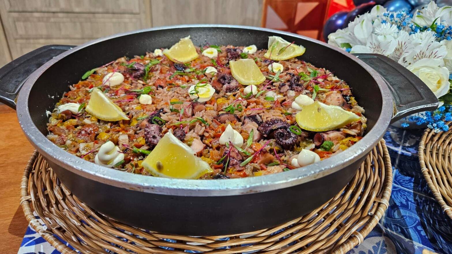 6 xícaras ou 1,4 litros do caldo de cozimento do polvo