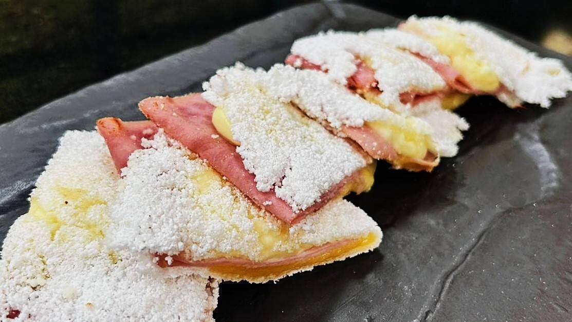 3. Vire, coloque os queijos, o presunto, feche e deixe cozinhar dos dois lados até que o queijo derreta.