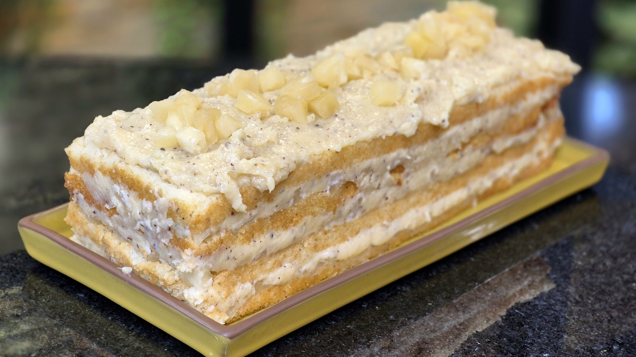 4. Reserve um pouco do creme para cobrir o bolo.