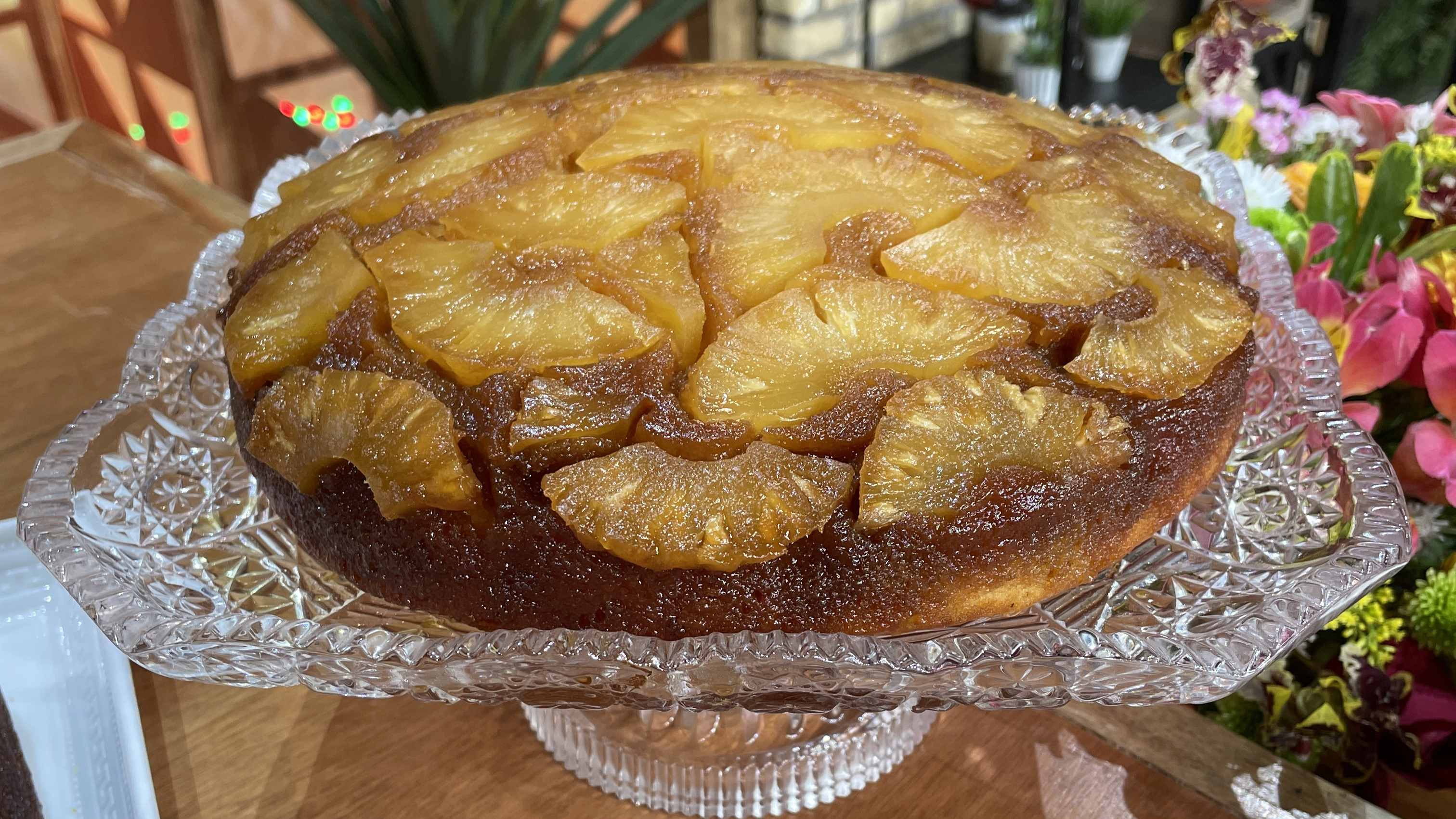 Arrume os abacaxis cortados ao meio no fundo da forma.