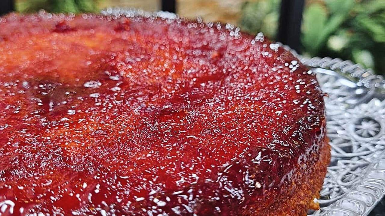 2. Em uma assadeira, coloque uma parte de caramelo, coloque a preparação do bolo e leve para assar a 180°C por 40 minutos.;