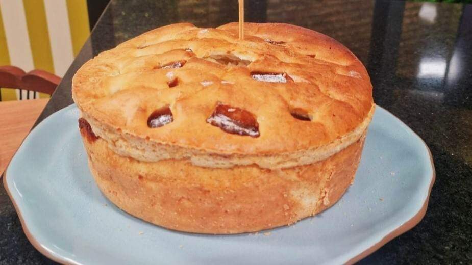 3. Corte a goiabada em cubos, passe na farinha de trigo e espalhe na massa;