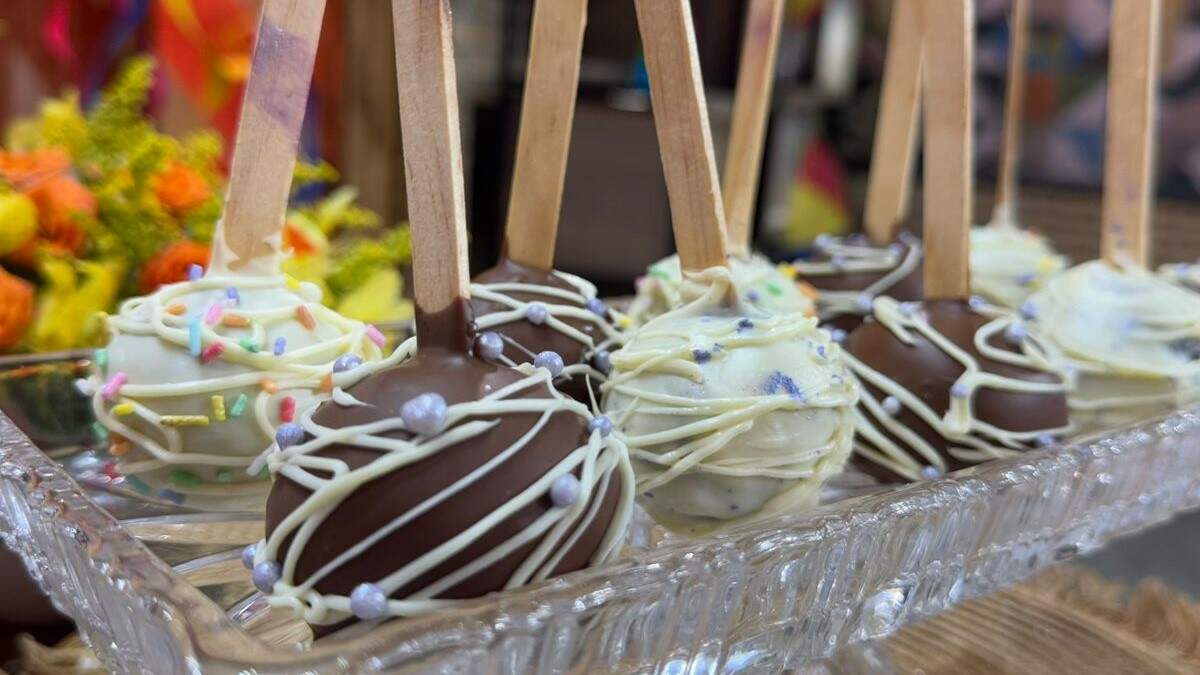 5 - Banhe os cakepops em chocolate ao leite ou meio amargo fracionado e deixe secar.